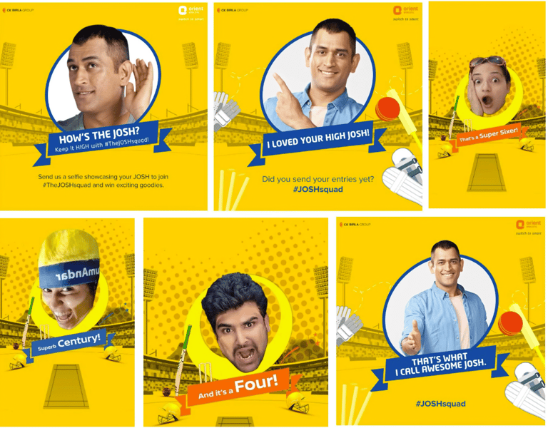 To amplify excitement during IPL 2019, we created the “Josh Squad Activity” for Orient Electric, tapping into the passion of cricket fans. Audiences were encouraged to share high-energy photos showcasing their “Josh” while watching matches. In real time, we responded to key match moments by posting Instagram Stories featuring these fan images, celebrating their reactions to fours, wickets, and milestones. This dynamic, participative approach turned viewers into active contributors, boosting engagement, fostering community spirit, and aligning the brand with the thrill and emotion of live cricket.